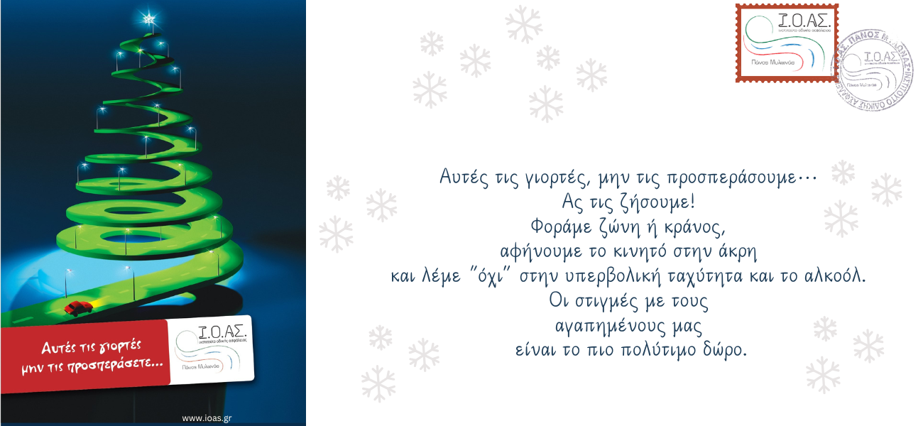 Η Πρόεδρος, το Διοικητικό Συμβούλιο και οι άνθρωποι του Ινστιτούτου Οδικής Ασφάλειας (Ι.Ο.ΑΣ.) «Πάνος Μυλωνάς» εύχονται σε εσάς και τους αγαπημένους σας: