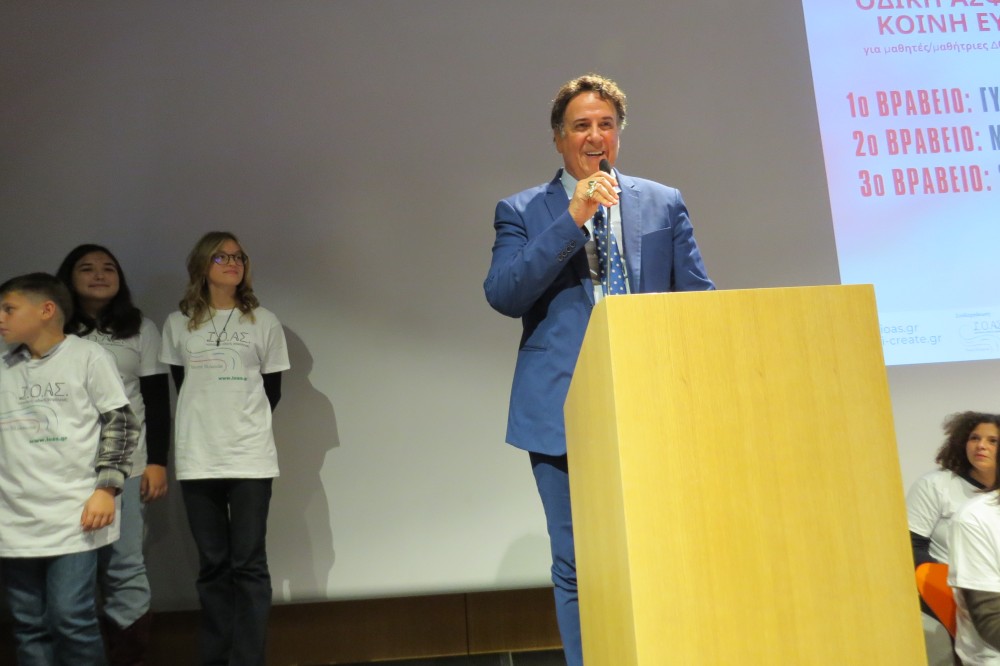 «Πολλές φορές εμείς οι μεγάλοι μπορούμε να μάθουμε από εσάς. Επομένως όλες αυτές οι δραστηριότητες που κάνετε στο Υπουργείο Παιδείας, στο Υπουργείο Μεταφορών, στο Ινστιτούτο Οδικής Ασφάλειας, θεωρώ πως πάνε σε αυτή την κατεύθυνση… Είναι πολύ σημαντικό για εμάς στο Υπουργείο Μεταφορών, στην Κυβέρνηση να βάλουμε ως στόχο τα Εκπαιδευτικά Προγράμματα... όμως πρέπει να κάνουμε και κάτι άλλο, να αλλάξουμε, και το έχουμε ήδη νομοθετήσει, τον τρόπο με τον οποίο παίρνουμε το δίπλωμα στην Ελλάδα…»